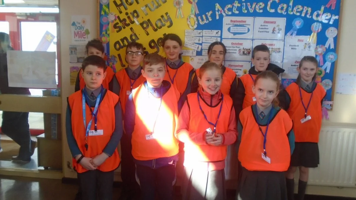 Every day all classes also engage in an βactive lΓneβ once the bell rings. They participate in a range of different activities each day such as squats, jumping jacks, jogging on the spot etc. All of these activities are led by the members of our Active Flag Committee. This has been working very well and the classes seem to really enjoy this new active incentive!