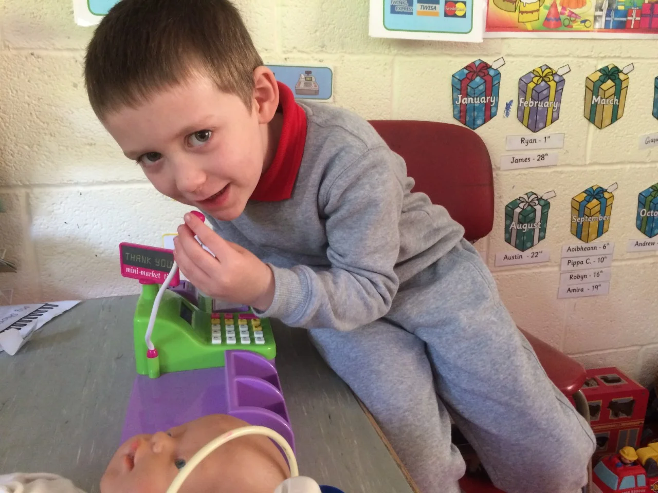 Ms Cullen's Junior Infants have been very busy learning about the supermarket during their ' Asitear ' time. They enjoyed looking in to the food cupboard and making lists of the supplies that they needed to replace. The boys and girls went to the supermarket looking for these items. They enjoyed going shopping and eating the food, especially the bread. They loved the bread so much they decided to make their own bread. While making the bread, they learned all about measuring, weighing and the effect of heat on different. They really enjoyed their brown bread treat after all of their hard work.