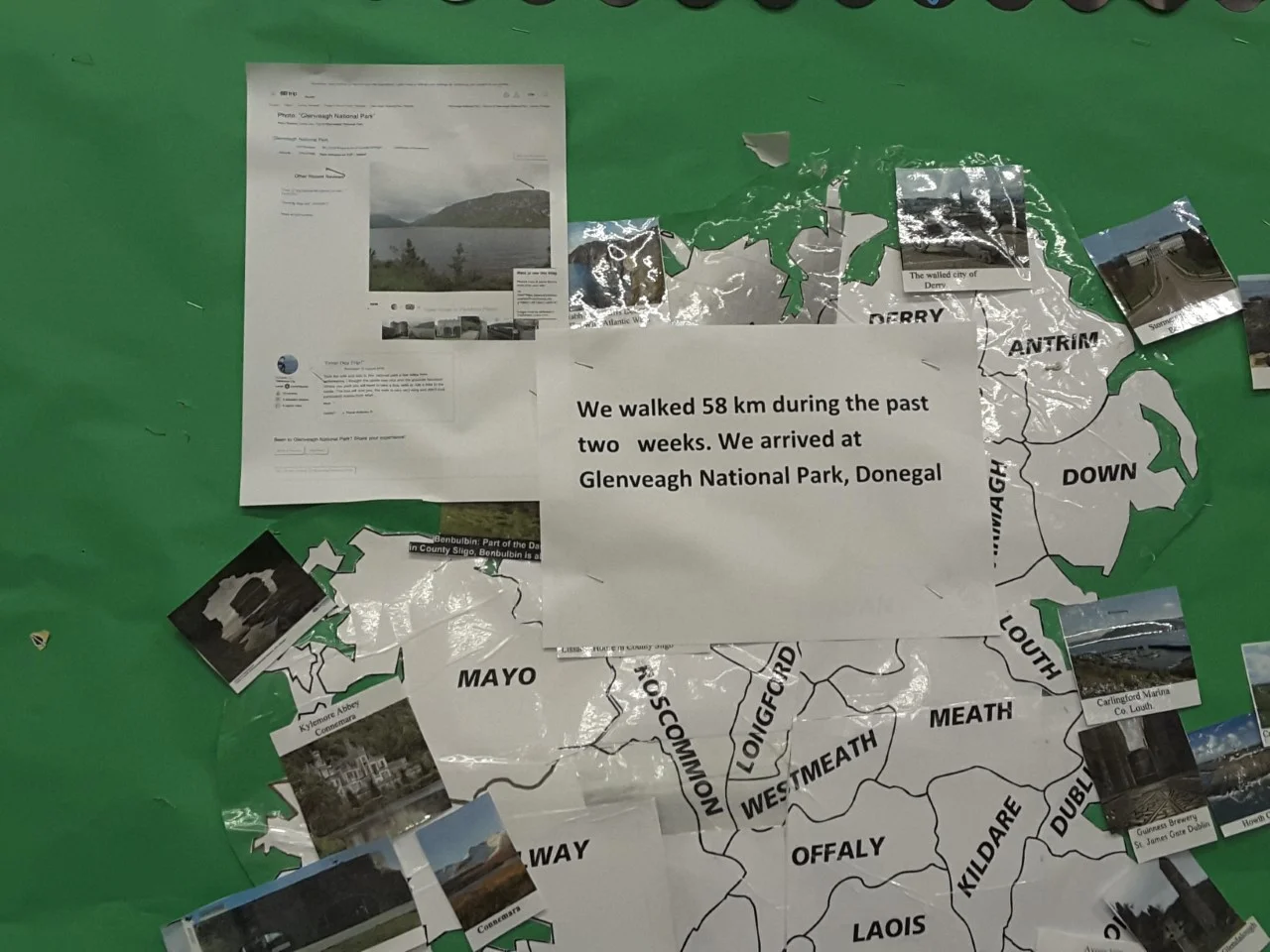 The children at Avoca N.S. are very busy in their quest to walk around Ireland. Last week they reach Glenveagh National Park in Co. Donegal. The total distance walked to date is 420 km. The 3rd class gave us some information at this morning's Assembly.
